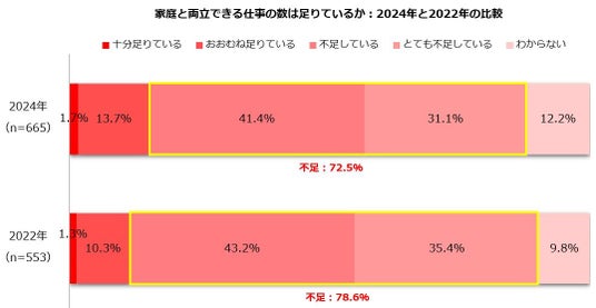 2.家庭と両立できる仕事の数は足りているか:2024年と2022年の比較
