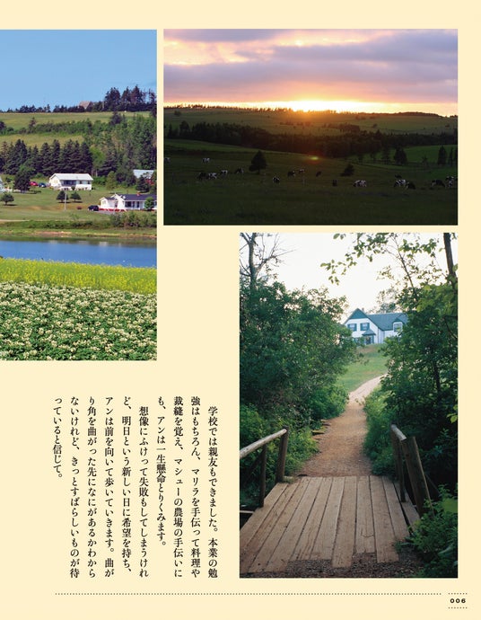 本書『図説 赤毛のアン 増補版』では、当時の貴重な資料・図版をひもときながら、作品の舞台であるプリンス・エドワード島の美しい写真もふんだんに収録、全編にわたって豪華に特集しています。作者モンゴメリの執筆エピソード、作品が生まれた時代背景など、詳細な解説文も充実しており、ファン垂涎の内容となっています。