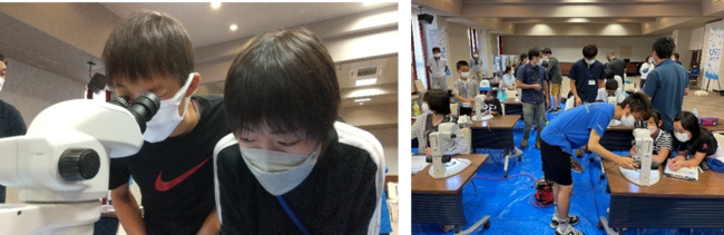 あおもり・あきた海山調査団の舞台を青森県深浦町に移して行われたのは、プランクトンの採取。プランクトンを採取する専用の器具を使い、深浦町の岸壁ギリギリから器具を海にたらしてプランクトンが入ってる海水を集めました。それを電子顕微鏡で覗いてみると子供たちからは「ウミホタル見つけたー」や「気持ち悪いのいたー」などと言いながら「ヤコウチュウ」や「クラゲ」「ミジンコ」などを見つけました。最初は見つけるのが難しそうにしていましたが、慣れると次々にプランクトンを見つける事ができました。豊かな山があるから豊かな海になる。夢中になって顕微鏡を覗き込む子供たちの熱中ぶりには講師の先生もびっくりするほどで、プランクトンは餌として海の生態系を支えている事を学ぶことができたようでした。
