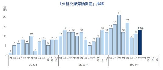 ■公租公課滞納倒産 2024年8月は13件発生 過去最多ペースで推移