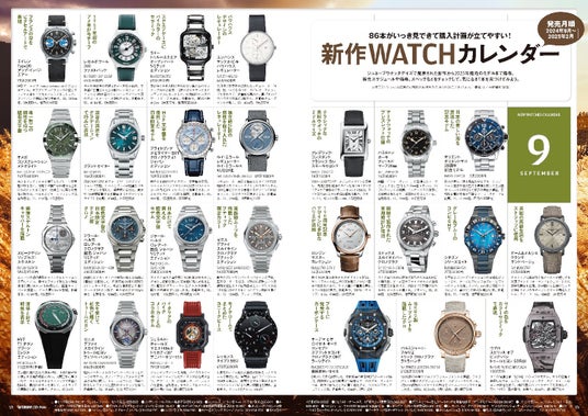 今号の巻頭特集は「30の最新事情で読み解く 2025年の時計界大予測」。腕時計の製品に関するトレンド予測はもちろん、メンテナンスやケアに関する今後の傾向、編集部座談会での大放談まで、あらゆる視点で今後の時計界の展望を予測しました。さらに、8月末に行われた時計イベント「ジュネーブ ウオッチ デイズ」の新作詳解や複数ブランドの工房取材レポート、腕時計のタイプ別ファッションコーディネイト術まで様々な特集も展開!