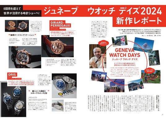 2024年開催で5年目となった新たな世界的時計イベント「ジュネーブ ウオッチ デイズ」を現地取材。そこで発表された新作の中から、国内展開のある10ブランドをピックアップして取り上げています。イベントの中心ブランドであるブルガリとブライトリングは、最新タイムピースに関連して製造拠点となるファクトリーツアーのレポートも! さらにスイスで足を伸ばしてヌーシャテルにある「ランディ・ブルー」と、ル・ロックル在住の日本人時計師、関口陽介さんのアトリエも取材しています。スタイリストが腕時計のジャンル別にコーディネイト術を伝授するファッション特集は、これからの着込む季節の参考記事として役立つこと間違いなし!