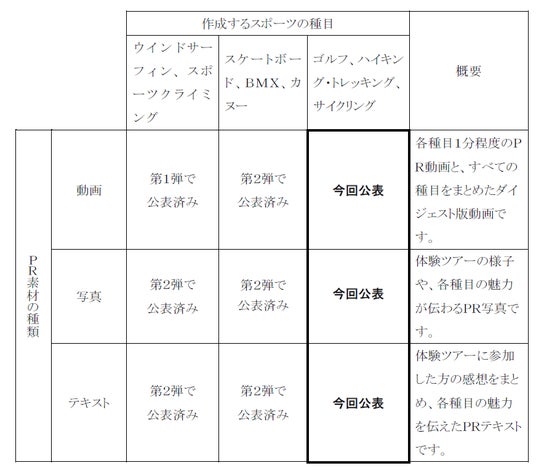 このたび、「ゴルフ」、「ハイキング・トレッキング」、「サイクリング」の動画等を公開します。
