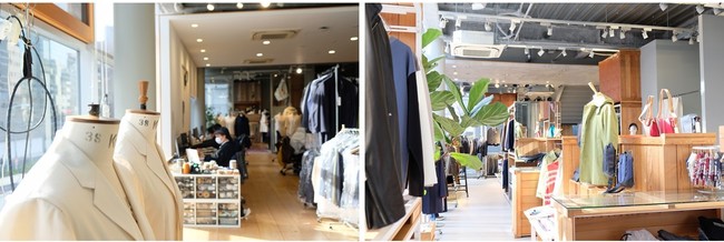 2012年にオープンしたメンズブランド「タケオキクチ」のフラッグシップショップを、昨年秋にリニューアル。1階の店舗はそのままに、2階にはディレクターのアトリエとデザイナーやパタンナーなど「タケオキクチ」の商品を生み出すメンバーが、3階はブランドを支える本部機能を置いた一体型のオフィスに。前面がガラス張りの自然光が入る開放的な室内は、複数の木材と古材のマテリアルの魅力を引き出して仕上げた家具を配置。ビル内随所がフォトジェニックで、撮影やインスタライブの配信も行う情報発信地に。