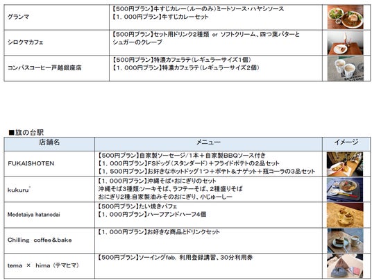 (5)内 容: 池上線・東急多摩川線全線が1日乗り降り自由の乗車券(池上線・東急多摩川線ワンデーパス)と池上線・東急多摩川線エリアの対象店舗(26店舗)での利用チケットがセットになった企画乗車券