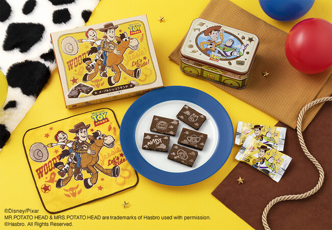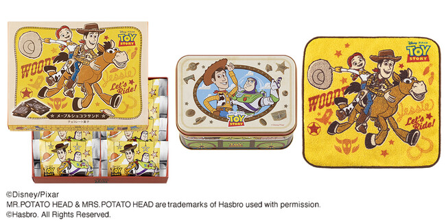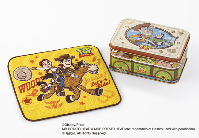 『トイ・ストーリー/メープルショコラサンド』スペシャル缶 14枚入にキュートなミニタオルがついてくる「ミニタオルセット」も登場します。「ウッディ」、「ジェシー」、「ブルズアイ」が描かれたポップなミニタオルは、ここでしか手に入らないオリジナル!『トイ・ストーリー』のおもちゃたちみたいに、ミニタオルもたくさん使ってあげると喜ぶかも?!なくなり次第終了となりますので、気になる方はお早めにチェックしてくださいね。
