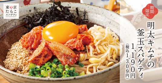 ここでしか食べられない進化系たらこスパゲティ専門店「東京たらこスパゲティ」は、キムチと明太子の個性的な辛さを堪能する新作「明太キムチの釜玉スパゲティ」を、2024年3月27日(水)より期間限定で販売開始いたします。