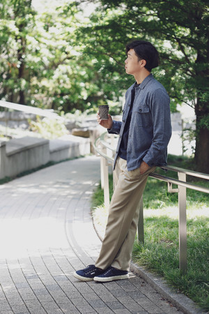 トレンド感あるゆったりとしたシルエットが特徴の「CPOシャツアウター」。スタイリングの統一感をはかるために、インナーはCPOシャツアウターと同系色にまとめたのがポイントです。