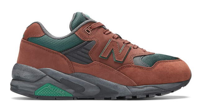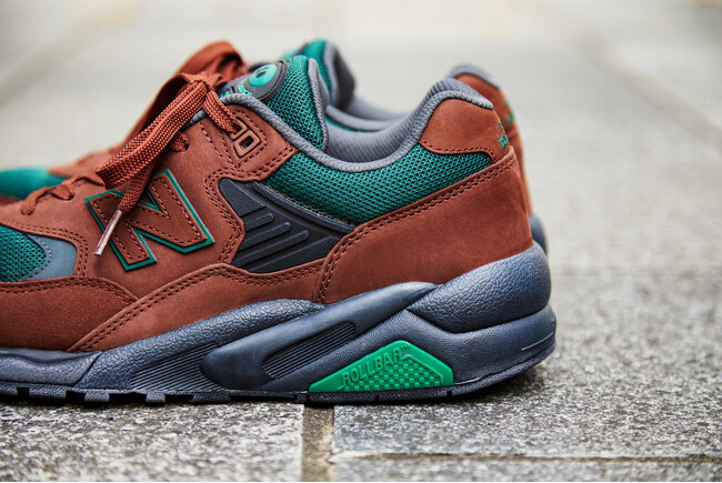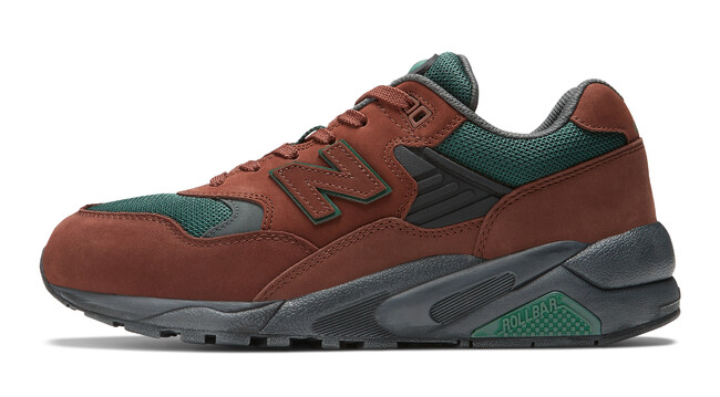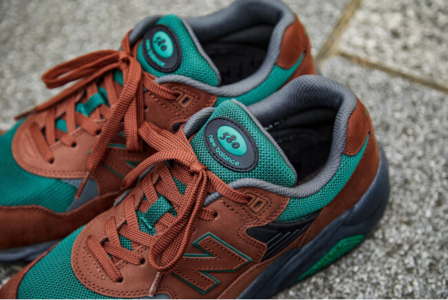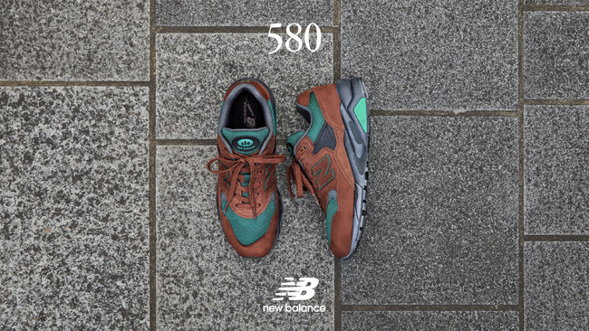 当時搭載されていた安定性をもたらす「ROLLBAR(ロールバー)」をミッドソールに搭載。ラストはニューバランスのスタンダードな「SL-1」ラストに変更され、過去の「580」よりスリムな印象に。今回のニューカラーは、アッパーは、ヌバックとメッシュ素材のコンビネーションで、深みのあるグリーンとブラウンがヴィンテージ感を漂わせます。