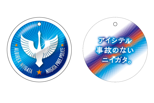 新潟県警察と協力して実施する広報活動の一環で企画したコラボ反射材ストラップが完成し、9月25日(日)大宮アルディージャ戦の試合会場で先着12,000名様に配布することとなりましたので、お知らせいたします。