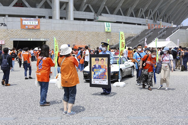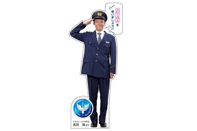 今年制作した交通安全ポスターで着用した制服姿の島田譲選手のパネルが登場します!