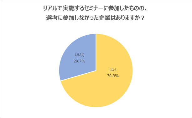コロナ禍でWebセミナーやWeb面接など、就職活動におけるオンライン活用が普及・定着しました。場所を選ばずに参加できる、移動時間がかからないなどの利便性があるものの、「企業の雰囲気や社員の声」などリアルな情報を得にくいという側面もあります。オンラインでセミナーに参加した後の選考参加について調査しました。
