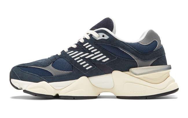 昨年7月にライフスタイルのニューモデルとして登場した「90/60(ナインティシックスティ)」は、ニューバランスのフラッグシップモデルとしてブランドを代表する900番台と、2000年台初頭のランニングシューズ「860」からインスピレーションを受け、これまでのフットウェアで親和性のある要素を活かしながら、よりモダンで表現力豊な新たなスタイルへと昇華させています。内外で異なるデザインのNロゴや、インスピレーションの源となった各モデルをより誇張したミッドソールデザイン、そして新鮮なデザインだけでなく、ミッドソールに衝撃吸収素材ABZORB(アブゾーブ)を搭載し、履き心地もグレードアップしています。