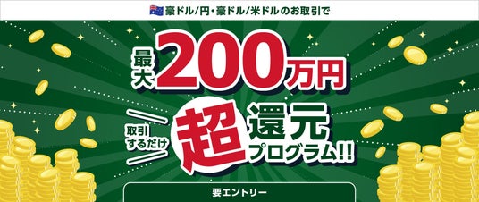 豪ドル/円・豪ドル/米ドルのお取引に応じて、最大200万円をキャッシュバックいたします。