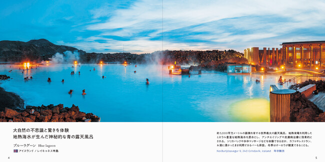 世界遺産を臨みながら温泉に浸かれる入浴施設、山深い聖地にある秘境温泉、湖のほとりにたたずむアートサウナなど……。雄大な自然が生み出したネイチャー温泉から最新鋭のサウナ施設まで、心身ともにほぐされる、癒しの温泉&サウナを世界各国から紹介します。コラムでは、温泉とサウナの歴史や世界のユニークなお風呂文化を特集。読むだけで体があたたまる、お風呂好き必見の1冊です。