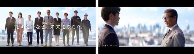 本CMは、当社グループが6月に発表したパーパス「託すをつなぎ、未来をひらく。」をテーマに制作。ステークホルダーから日々さまざまな思いを託されてきた当社グループの従業員が、未来に向けて成し遂げたいことを宣言するストーリーで、パーパスを旗印に、当社グループが目指す未来を表現しています。