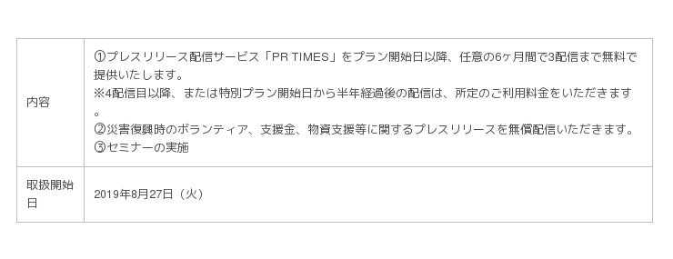 今回の連携協定で提供する「京都府自治体特別プラン」では、対象自治体に本日以降、任意の6ヶ月間で3回までプレスリリース配信を無料で提供し、京都府内の各市町村が持つ魅力的なニュースを自ら発信しやすくする環境づくりを進めてまいります。また自治体の重要ミッションである、地域の災害復興情報の発信については、前述の特別プランとは別に恒久的に無償でプレスリリース配信を提供いたします。