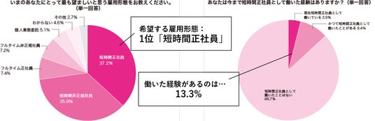 特に「短時間正社員」は、就労志向の主婦層が最も希望する雇用形態ですが、実際に経験したことがある方はわずか13.3%に過ぎず、従来の短時間勤務制度だけでは、希望する全ての人をカバーしきれていないことがわかります。