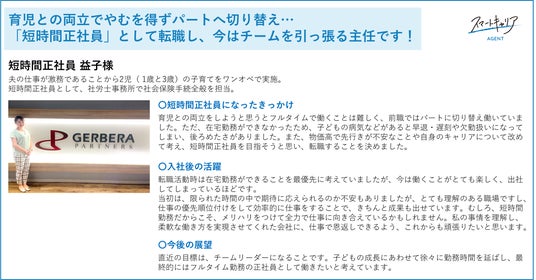 そこで当社は「短時間正社員」として転職できる人材紹介事業を2018年より展開し、より多くの方が希望通りに働けるよう、働き方の選択肢を1つ増やしています。