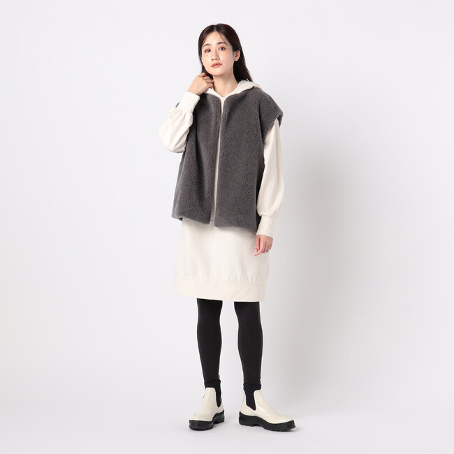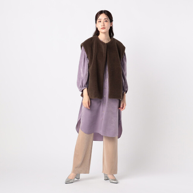 ドレスやボトムのどちらとも相性の良い丈感なので、様々なコーディネートを楽しめます。真冬はアウターの上から羽織ると今年らしい旬なスタイリングが完成します。