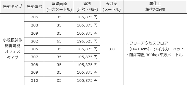※敷金はいずれのタイプも賃料(税抜)の3ヶ月分。