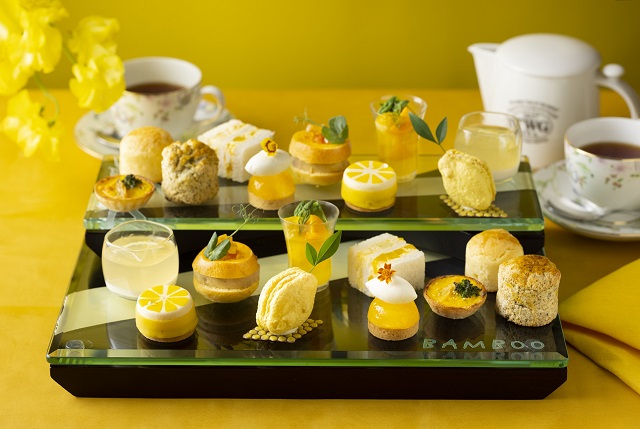 女性パティシエが女性のために考案した、目にも鮮やかな黄色のアフタヌーンティーです。
