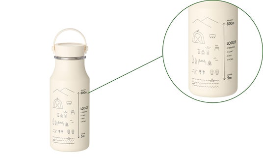 本体表面はマットな質感で、指紋が目立ちにくく、さらさらとした心地よい触感を実現。塗装も剥がれにくい仕様のため、長く使えるのも魅力。LOGOSのブランドポリシー「水辺5メートルから標高800メートルまで」を表現したオリジナルデザイン。