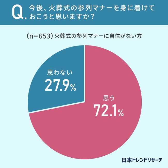 ■72.1%が「今後、火葬式の参列マナーを身に着けておこうと思う」