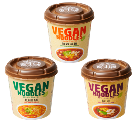 「ヴィーガンヌードル」は、 「T'sレストラン」監修のもと、2015年よりヤマダイ株式会社が製造・販売をしている動物性食材・アルコール不使用のからだにやさしいカップ麺ブランドです。「T'sたんたん」店舗でもお土産品として販売しており、ヴィーガンの方をはじめ、インバウンドの方・健康志向の方など国内外問わずに幅広いお客さまに好評をいただいております。