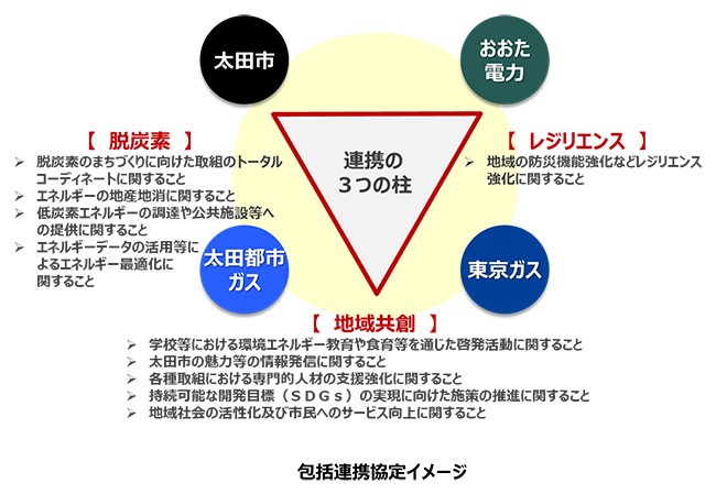 東京ガス株式会社(社長:笹山 晋一、以下「東京ガス」)は、このたび、太田市(市長:清水 聖義)、太田都市ガス株式会社(社長:木村 道幸)、日本カーソリューションズ株式会社(社長:高島 俊史)と、「脱炭素のまちづくりに向けた包括連携協定」*1に基づく、EV導入およびEV充電マネジメント*2の共同検証に関する基本合意書を締結しました。