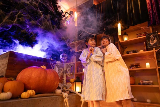 夜更かししながらハロウィン気分を存分に楽しんでもらうため、カフェの営業時間を延長。23時間おふろに入れる「オールナイト風呂」も開催します。