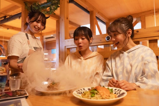 瞬間燻製のスモークが立ちのぼる「チキンとバターナッツのグリル 1,408円」や悪魔に扮したスタッフが巨大なペッパーミルで胡椒をかけて仕上げる「スモークサーモンときのこのペペロンチーノ 1,518円」、マロンクリームとクッキーでお客さま自身でモンスターに仕上げる「ハロウィンモンスターモンブラン 1,188円」など、食べるまでの体験も楽しいハロウィンメニュー5種類を提供します。