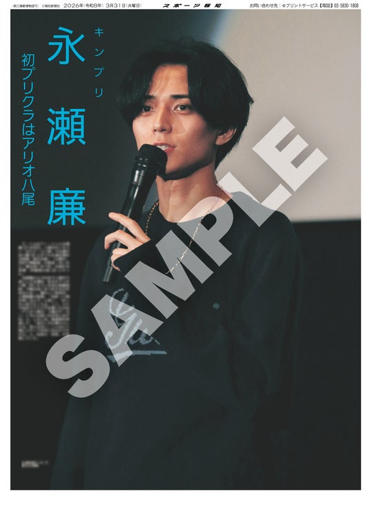 スポーツ報知を発行する報知新聞社(代表取締役社長・長谷川剛)は新聞の一部紙面をコンビニエンスストアのマルチコピー機からプリントできる「スポーツ報知コンビニプリント」サービスを展開中。スポーツ紙ならではの大きな写真を使った紙面をプリント版として販売しています。新たに3月31日付掲載、大阪・八尾市出身のKing&Prince永瀬廉が同市のシネコン「MOVIX八尾」で女優の吉川愛とダブル主演を務める映画「鬼の花嫁」の凱旋舞台あいさつを行った様子を伝える紙面を発売中です。