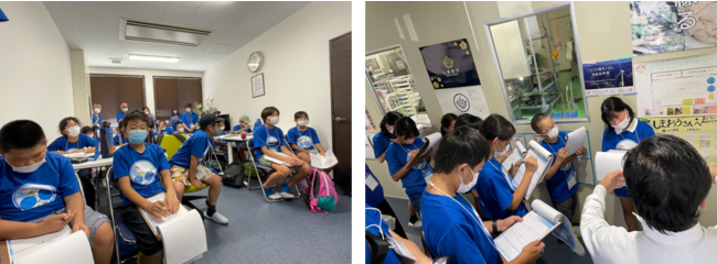 2日目は、日本で初めて商用運転を開始した浮体式洋上風力発電「はえんかぜ」 についての座学からスタートです!台風の通り道でもあり、比較的強い風が得られること、そして地元の漁師さんの理解が得られたことなどが理由で五島市沖が選ばれ、「日本で初めて!」ということに子供達もびっくりしていました。