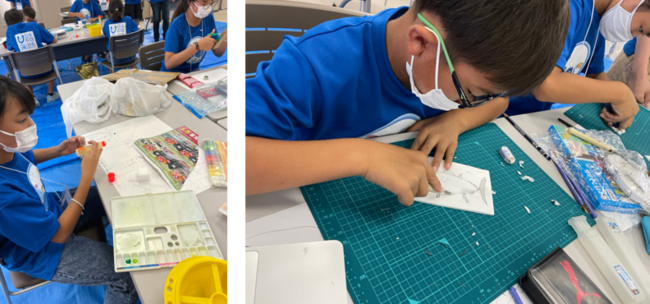 浮体式洋上風力発電は、海に沈んでいる部分が「漁礁」となり、魚の住みかになっていていることで漁師さんにも迷惑がかからないということや、国土の狭い日本において今後益々重要となる、再生可能エネルギーのひとつだということを学びました。はえんかぜについて学んだ後は、風力発電の模型作りに挑戦しました!構造はシンプルですが羽の形や大きさ、向きやひねりで発電量が変わることを知り、実際の浮体式洋上風力発電の設計の緻密さを深く学びました。