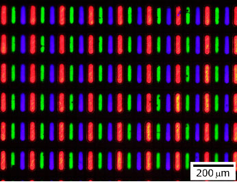 今般、発光スペクトル幅が狭くカドミウム(Cd)を含まない量子ドットによる、電流注入での発光とRGB(赤緑青)画素のパターニングに成功しました。これにより、環境負荷が小さく、高輝度・高コントラストで広い色域を兼ね備えた、新たな自発光型のディスプレイの実現が可能となります。今後は、ヘッドマウントディスプレイをはじめとした中小型の高精細ディスプレイから8K/4K大型ディスプレイまでに適用できる省エネルギーディスプレイの早期実用化に取り組み、2030年の日本における省エネ効果量として11.3万kL(原油換算)を目指します。