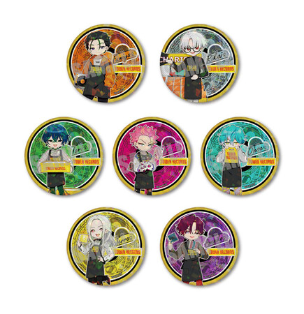 トレーディングホログラム缶バッジ(全7種)単品550円(税込)/ BOX 3,850円(税込)