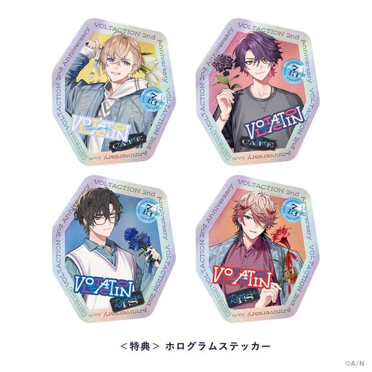 にじさんじオフィシャルストアにて「VOLTACTION 2nd Anniversary」グッズを購入すると、お買い上げ3,000円(税込)ごとに 「ホログラムステッカー(全4種)」をランダムで1枚プレゼントいたします。