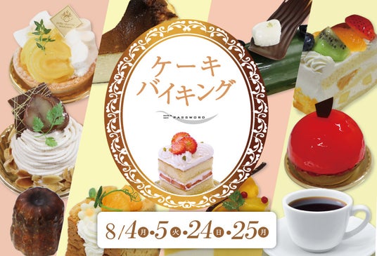 和歌山ターミナルビル株式会社(和歌山県和歌山市、代表取締役社長 武田雅夫)が運営するホテルグランヴィア和歌山は、ホテルズカフェパスワードにて「ケーキバイキング」を夏休み期間8月4日(月)、5日(火)、24日(日)、25日(月)の4日間限定で開催いたします。普段店内やテイクアウトで人気のケーキがショーケースいっぱいに並び食べ放題でお楽しみいただけます。豊富なスイーツとセルフサービスのドリンクで、午後のひとときを贅沢にお過ごしください。ご友人やご家族とゆっくり語らうもよし、お一人で“自分時間”を楽しむもよし。心が浮き立つ特別なケーキバイキングで、幸せな午後をお楽しみください。