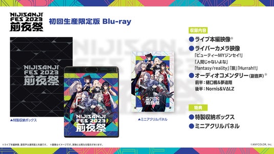 ライブ本編の収録に加え、樋口楓&夢追翔、Nornis&VΔLZのオーディオコメンタリーを副音声として収録!初回生産限定版には、特製収納ボックスのほか、キービジュアルを使用したミニアクリルパネルが付属。さらに特典映像として、1名のライバーを追いかけ続けるライバーカメラから厳選した5曲を収録しています。