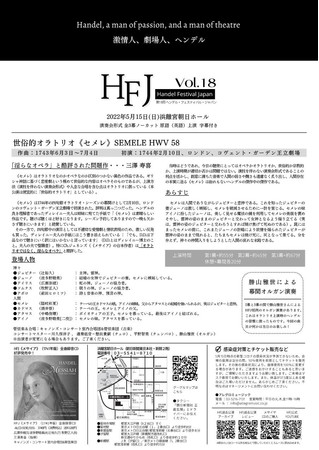 第18回 ヘンデル・フェスティバル・ジャパン 世俗的オラトリオ『セメレ』が2022年5月15日(日)に浜離宮朝日ホール (東京都中央区)にて上演されます。チケットはカンフェティ(運営:ロングランプランニング株式会社、東京都新宿区、代表取締役:榑松 大剛)にて発売中です。