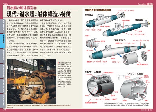 巻頭には、海上自衛隊の最新型潜水艦たいげい型と、米海軍が誇る原子力空母『ロナルド・レーガン』の内部構造がすみずみまでわかる透視図解イラスト掲載の3つ折り特大綴じ込みがついています。