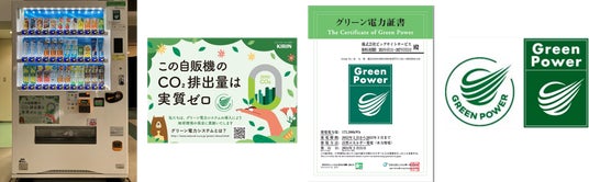 <実際の自動販売機> <掲出POP> <グリーン電力証書> <グリーンパワーマーク>