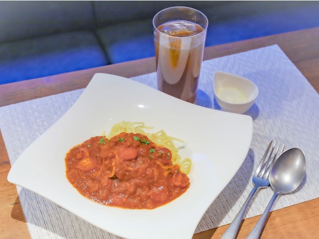 がっつり食べたいときにもピッタリなスパゲッティです。スプーンを使って余すことなくミートソースを楽しんで。