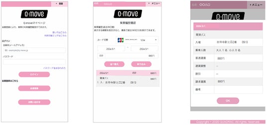 QUADRACのQ-moveサイトにアクセスし、「マイページ」の会員登録手続きが完了すると、タッチ決済の利用履歴を確認することができます。