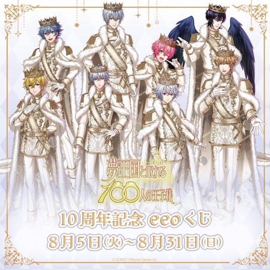 2025年3月9日に10周年を迎えた、大人気スマホゲームアプリ『夢王国と眠れる100人の王子様』(以下、『夢100』)のオンラインくじ「eeoくじ」が登場! 通販サイト「eeo Store online」で8月31日(日)まで販売中です。