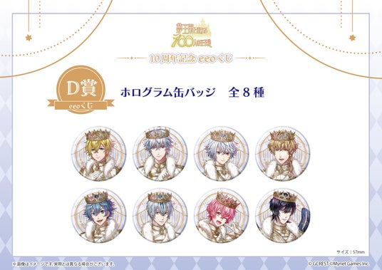 D賞は、光に当てるとキラキラと輝く直径5.7cmのホログラム缶バッジ。王子様たちの美しいお顔をアップめにデザインしています。