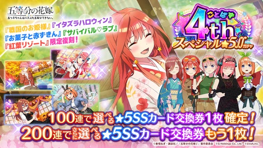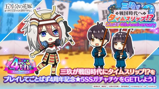 10月15日(火)より、「ごとぱず4th Anniversaryスペシャル★5SSガチャ」やミニゲーム「三玖が戦国時代へタイムスリップ!?」などの様々なキャンペーンを開催しております。