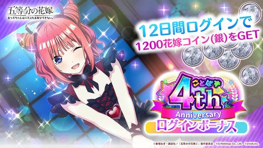 株式会社enish(本社:東京都港区、代表取締役社長:安徳 孝平、以下enish)は、2024年10月15日(火)より、アニメ「五等分の花嫁」初となるゲームアプリ『五等分の花嫁 五つ子ちゃんはパズルを五等分できない。』にて、4周年記念キャンペーンを開催中です。