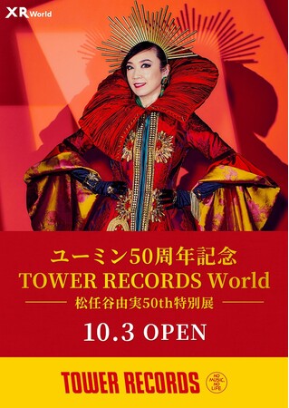 タワーレコード株式会社(本店所在地:東京都渋谷区 代表取締役社長:嶺脇育夫 以下タワーレコード)では、株式会社NTTドコモ(以下、ドコモ)が提供するマルチデバイス型メタバース「XR World(R)」※1(以下、XR World)でタワーレコードが展開する“TOWER RECORDS World”にて、松任谷由実50周年を記念しバーチャル空間で体験できる展示イベント「TOWER RECORDS World - 松任谷由実 50th特別展 -」を10月3日(月)11:00より開催することが決定しました。